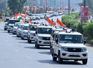 मुख्यमंत्री श्री विष्णुदेव साय के नेतृत्व और पहल में हो रहे भव्य सैन्य समारोह के लिए आज राजधानी रायपुर पहुंचे भारतीय सेना के भीष्म टैंक और अन्य आर्टिलरी का शानदार स्वागत किया गया। इसके बाद एक रैली के रूप में टैंक एवं सैन्य उपकरण रायपुर शहर के तेलीबांधा, मरीन ड्राइव, कलेक्ट्रेट, जयस्तंभ और आश्रम चौक होते हुए साइंस कॉलेज मैदान तक मैदान पहुंचा।