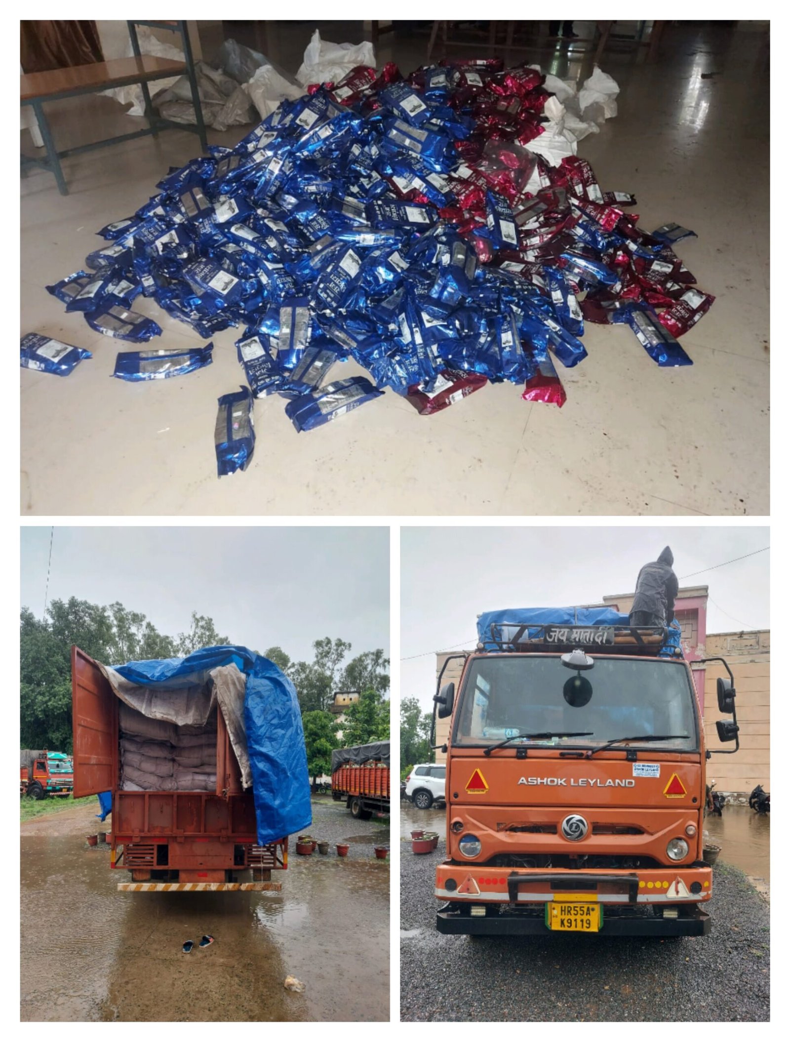 पान मसाला, जिसमें लगभग 15,96,000 पाउच (कीमत लगभग ₹63,84,000) और 38 बोरियों में च्युइंग तंबाकू, अनुमानित 15,96,000 पाउच (कीमत लगभग ₹15,96,000)
