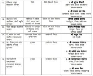 राज्य अलंकरण समारोह में सम्मानित होने वाले विभूतियों के नाम की लिस्ट: